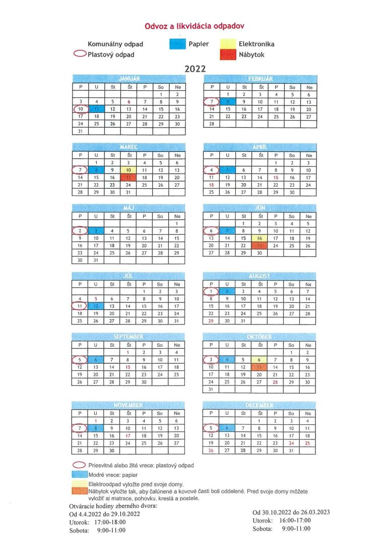 Harmonogram zberu odpadov